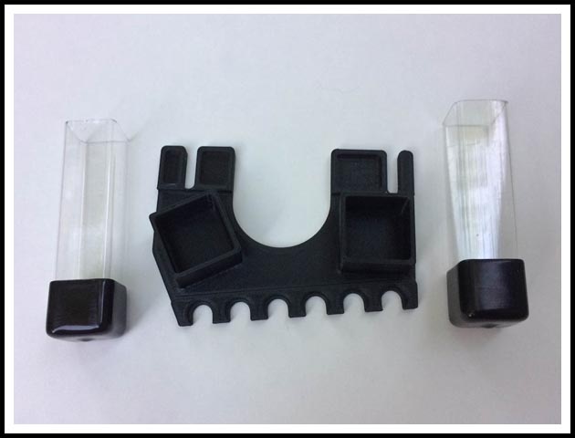 This is a Casefeeder Crud Catcher that I came up with for the Dillon XL650 Casefeeder. The Dillon Casefeed has two holes in the bottom back of the bowl assembly. These holes allow any accumulated spent power, polishing media or general crud to drain out of the bowl. This crud if left unchecked can fall all over your press or bench top. Most reloaders just tape some kind of cup or even a couple of spent shell casings to the back of the feeder to collect the debris. This upgrade accomplishes the same thing in just a more elegant manner. The Base Mounting Riser Bracket is printed on a 3D Printer and the stacks are clear polyethylene tubes so you can see when they need to be emptied.